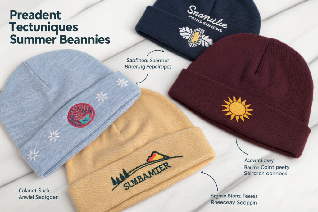 Summer beanies require specialized embroidery approaches that maintain appearance despite sun exposure, frequent washing, and active use while preserving fabric breathability.