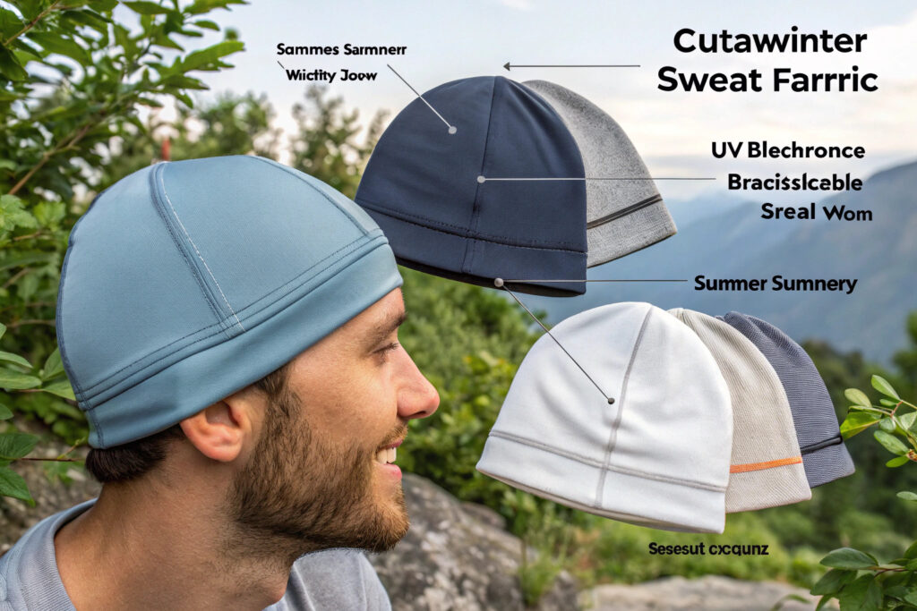 Traditional acrylic and wool beanies trap heat and moisture, making them uncomfortable for summer wear. Summer-specific materials balance lightweight comfort with moisture management and sun protection.