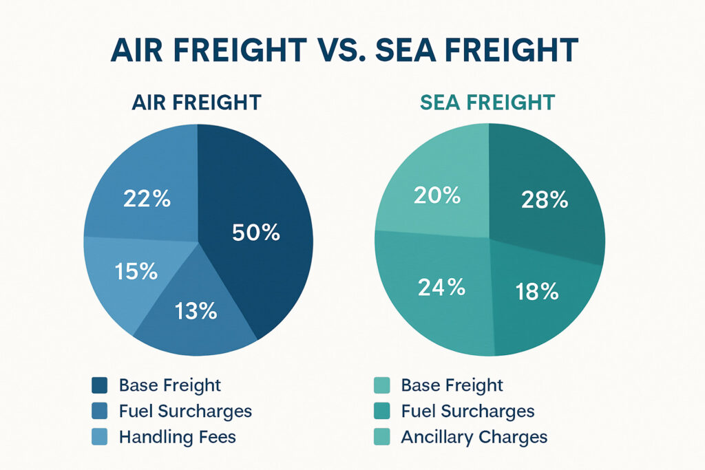 Direct transportation costs form the foundation of any freight comparison, but understanding the complete picture requires looking beyond basic carrier quotes. Both air and sea freight involve multiple cost layers that can significantly impact total expenses.