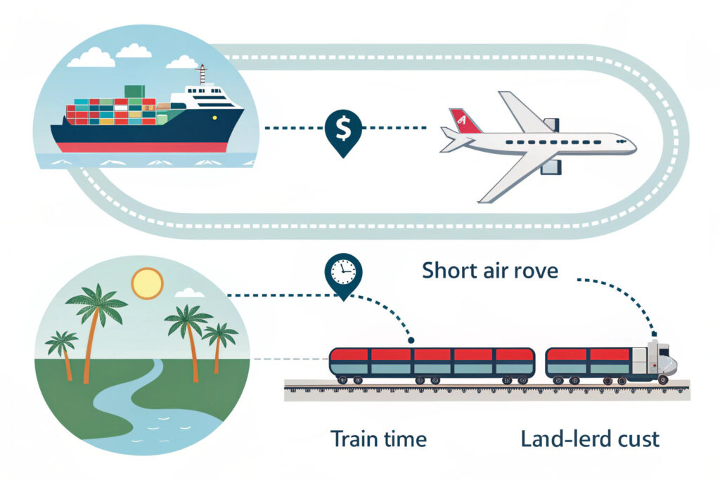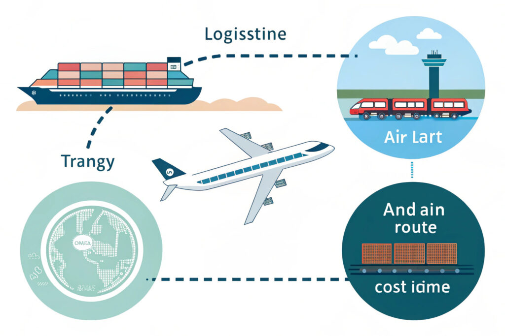 - Air Freight: The goods would be flown directly. Time: 2-4 days. Cost: Very High.