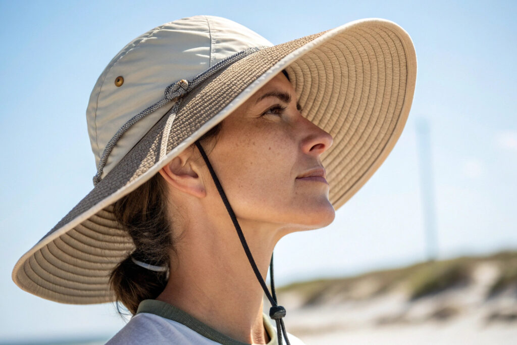 Wide brims provide essential shading for the entire face, including often-overlooked areas like the nose, cheeks, and chin. For sun-sensitive skin, brims measuring 3-5 inches provide optimal protection, creating a continuous shadow that moves with the wearer. The brim should extend evenly around the entire hat, unlike baseball caps that only protect the front of the face. This 360-degree coverage is particularly important because UV radiation reflects from surfaces like water, sand, and concrete, reaching the skin from multiple angles. Additionally, wider brims protect the delicate skin of the ears and side of the neck—areas where skin cancers commonly develop but are frequently missed during sunscreen application.