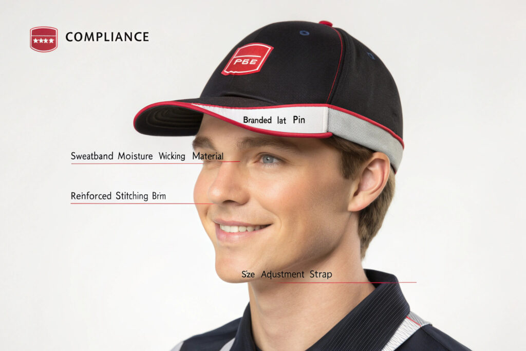 - Branding Consistency: Any logos, patches, or pins must be the officially approved version and placed in the exact millimeter-perfect location. For instance, a policy might state that a hat pin shall be placed along the left side of the crown...centered horizontally from front to back.