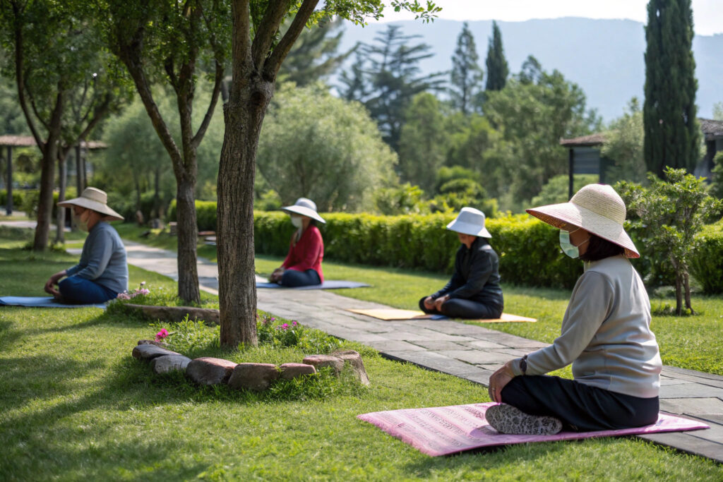 Wide-brim hats create personal space and visual privacy during outdoor meditation, helping participants focus inward by reducing visual distractions. The shade provided by a generous brim also helps maintain cooler head temperature, supporting extended meditation comfort.