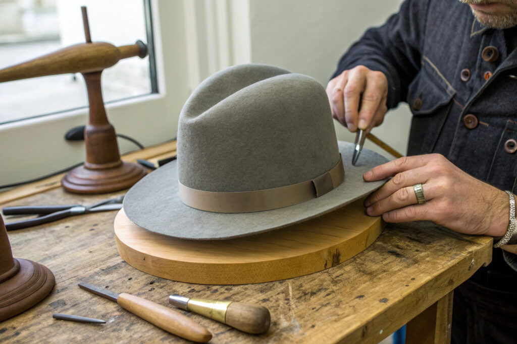 3. Labor Intensity: Hand-blocking (shaping the felt over a steam-heated block), hand-sewing the ribbon, and hand-finishing the brim are skilled, time-consuming processes that define a quality Homburg.