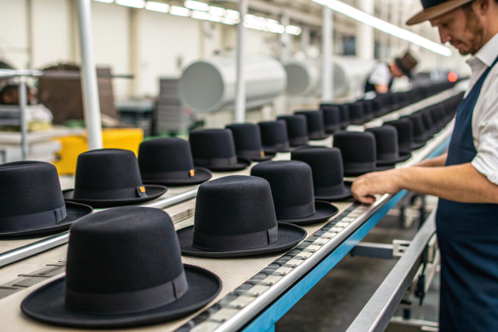 - Assembly Line Finishing: A dedicated team handles the finishing touches—brim trimming, ribbon application, and liner insertion—to ensure consistency across the entire run.