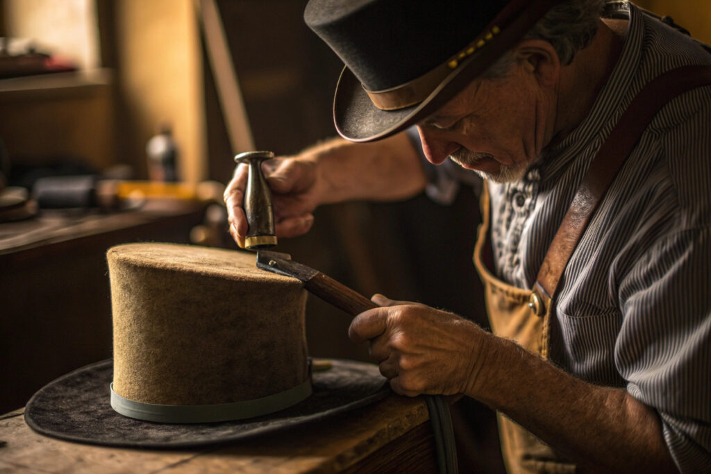 - Finishing: The brim is cut and curled, the crown is finished, and the hat is lined with silk and fitted with a leather sweatband. Every step is done by hand.