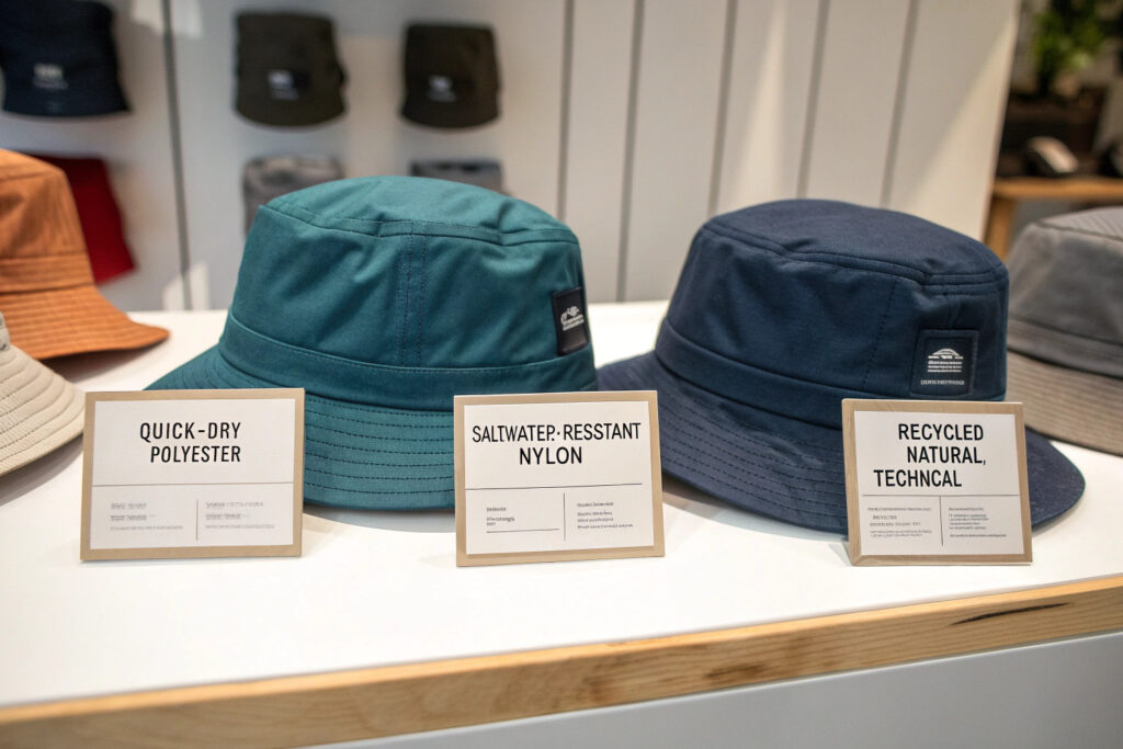 High-performance materials for surf bucket hats include technical polyester blends, specialized nylons, and natural-synthetic hybrids that offer both environmental credentials and performance benefits.