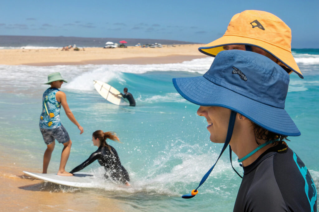 True surf-grade bucket hats combine UPF 50+ materials with water-resistant treatments, reinforced stitching, secure attachment systems, and quick-dry capabilities. These features ensure protection remains effective during ocean activities and the hat survives the harsh beach environment.