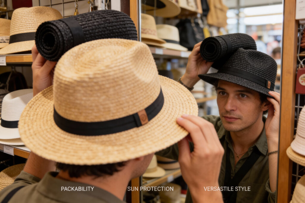 The rollable straw fedora solves this problem perfectly. It excels in the three areas most critical to a backpacker: packability, sun protection, and versatile style. It's a single item that serves multiple essential functions without being a burden. It can be stowed away securely when you're on the move and then brought out to provide instant shade and a touch of style when you reach your destination.